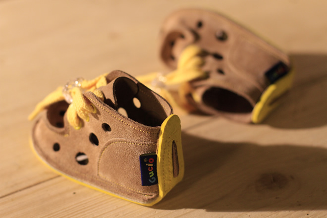 Obuwie mojego projektu służy najmłodszym dzieciom jako pierwsze obuwie do nauki chodzenia.